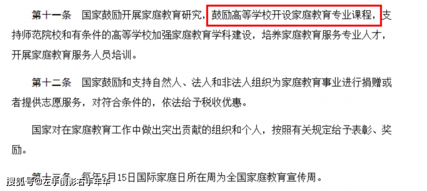 其中提升计划明确提出:国家鼓励开展家庭教育研究,鼓励高等学校开设家庭教育专业课程,培养家庭教育服务专业人才,开展家庭教育服务人员培训。