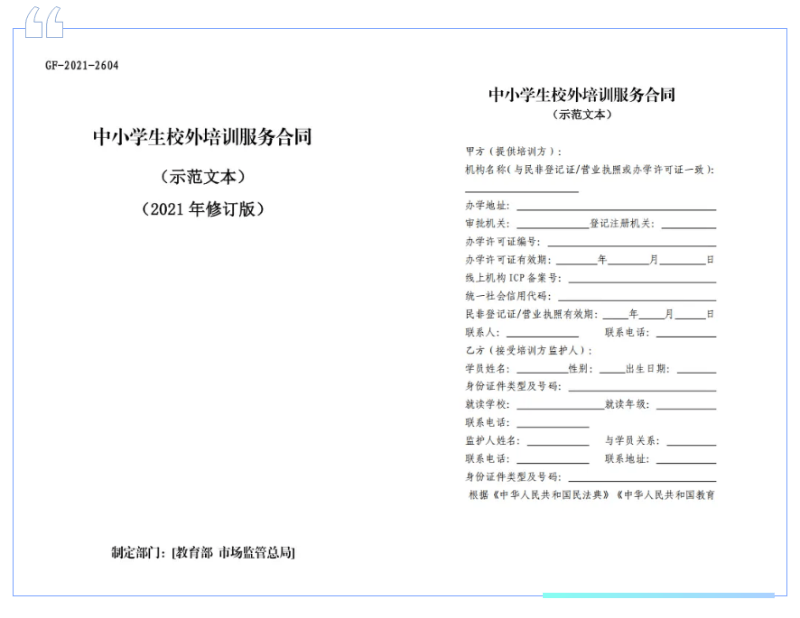 务必签订培训服务合同。请家长朋友与校外培训机构签订正规服务合同,要使用教育部和市场监管总局联合制定的《中小学生校外培训服务合同(示范文本)》(2021年修订版),确认合同中机构名称与其办学许可证上的名称一致,并妥善保管合同,以便在发生纠纷时依。